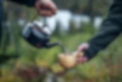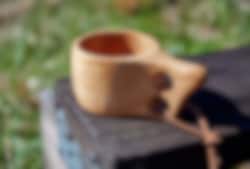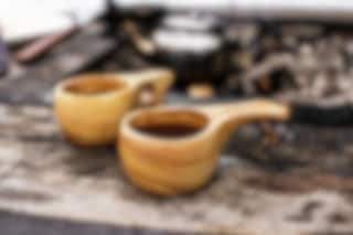 Kokkaffe bör drickas ur en träkåsa. Kåsa med enkelt handtag tillverkad i segt och tåligt gummiträ. Rymmer cirka 15 cl. Mått: 15 x 6 cm, höjd 6 cm.