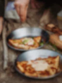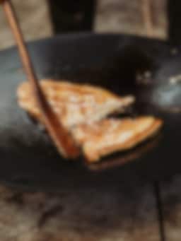 - Se till att stekhällen står jämt och inte är glödande het. Även om det ska vara en snabb rätt att laga är det bättre att hällen inte är för varm så omeletten bränner. Stek i olja.
