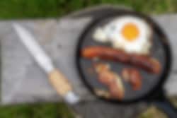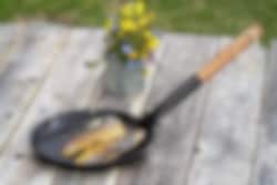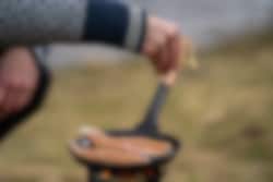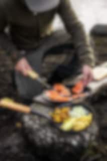 Vår lilla och smidiga jägarpanna med vikbart handtag av trä får du enkelt med dig i ryggsäcken. Trähandtaget ger en trygg hantering, oavsett om det är över en gaslåga eller över öppen eld. Pannan i varmvalsat stål levereras fabriksinoljad. En trogen vän och uppskattad present för jägare, fiskare och friluftsfolk. Hällmark of Sweden är sprunget ur de svenska hällmarkerna, rejäla och närmast oförstörbara. Diameter 21 cm, vikt 0,65 kg.