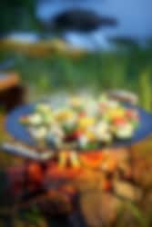 En stekhäll för det mindre sällskapet, lämplig för 1-4 personer. En smidig modell som är enkel att ta med sig ut i skog och mark, i båten eller i husbilen. Hällen kan användas i kombination med våra gasolbrännare, på en grill eller direkt över öppen eld. Hällen är tillverkad av högklassigt varmvalsat stål och levereras med emaljerad yta. Våra stilrena handtag, i kromat fjäderstål, har hämtat både inspiration och funktion från vackra och rejäla gamla vedspisar, handtagen håller sig svalare än hällen. Hällmark of Sweden är sprunget ur de svenska hällmarkerna, rejäla och närmast oförstörbara. Därför erbjuder vi livstidsgaranti på våra stekhällar. Tre avtagbara ben för matlagning över öppen eld medföljer. Diameter 48 cm, höjd 22 cm, vikt ca 6,7 kg.