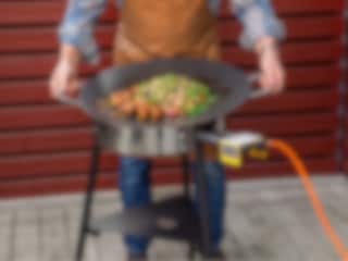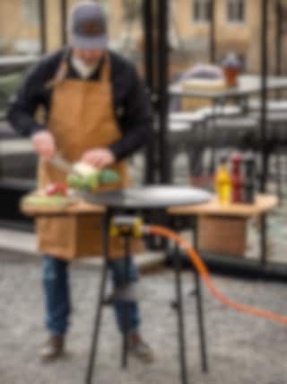 Ett komplett set så du snabbt kan komma igång med din utomhusmatlagning. Innehåller stekhäll, gasolbrännare, avlastningsbord, vindskydd och regulatorset. V2 har uppdaterats med ett vred med färgmarkering, reglage med fasta lägen och en matt stilren färg på brännaren. Men framförallt med en ny och stadigare konstruktion, enklare montering och med ett praktiskt avlastningsbord.