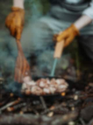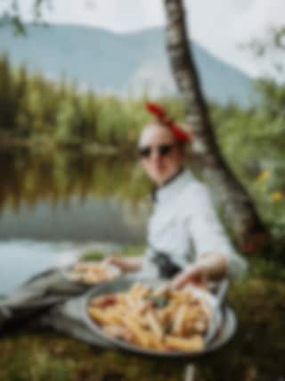 När grönkålen mjuknat och pastan är klar kan man röra ihop allt till en kulinarisk utemåltid! Njut