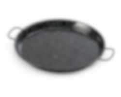 En klassisk paellapanna i emaljerat stål med två handtag. Självklart utmärkt för att laga just paella över en gasollåga i, men det är bara din fantasi som sätter gränserna för vad pannan kan användas till. Serveringsfat och varmhållning är två funktioner. Den uppvikta kanten gör pannan lämplig även för grytor och annat som ska småputtra lite längre. Hällmark of Sweden är sprunget ur de svenska hällmarkerna, rejäla och närmast oförstörbara. Diameter 46 cm, kant 6 cm, vikt 2 kg.